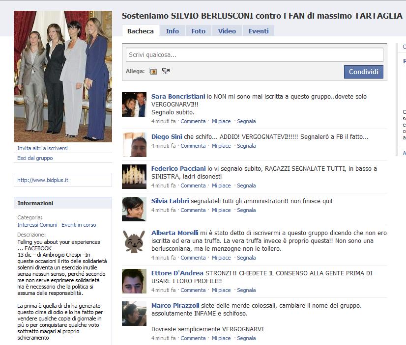 IL GRUPPO SI CHIAMA: “Sosteniamo SILVIO BERLUSCONI contro i FAN di massimo TARTAGLIA”… CONDIVIDO I COMMENTI DELLA FOTO.. VIVA L’ITALIA!!!