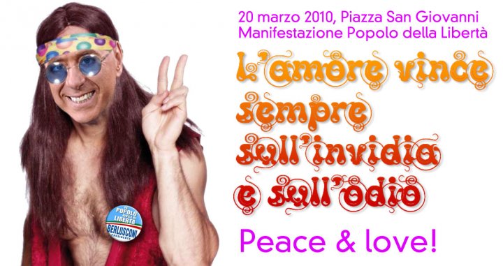 -Il titolo della manifestazione del PDL a Roma avrà come titolo: “L’amore vince sempre sull’invidia e sull’odio”… Peace & Love! 😉