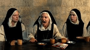 Quando la suora è stesa a terra priva di sensi, l’ubriaco si pulisce la bocca con la manica della giacca e fa: