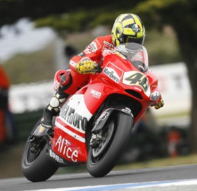 Valentino Rossi cerca di calmare il tono dei rumors, confermando che la sua volontà è di rimanere in Yamaha anche per l’anno prossimo. Quando siamo venuti a sapere dell’offerta di contratto a Stoner da parte di Honda, lo ammettiamo, abbiamo pensato anche noi ad una immediata risposta di Ducati, con proposta di contratto al Dottore, ma questo non è (ancora) accaduto.