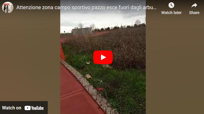 Ecco l’incredibile video della zona del campo sportivo dove poco fa i residenti sono stati sorpresi da un uomo che è uscito dagli arbusti e ha iniziato a chiedere amore in cambio di cioccolato.