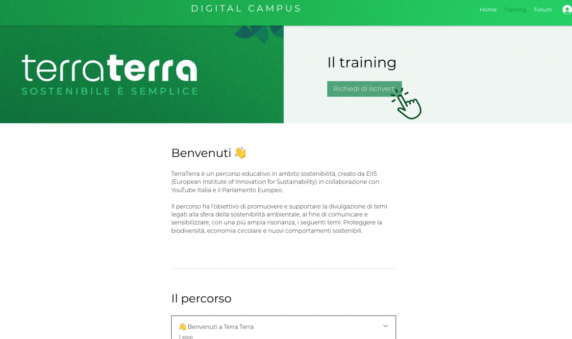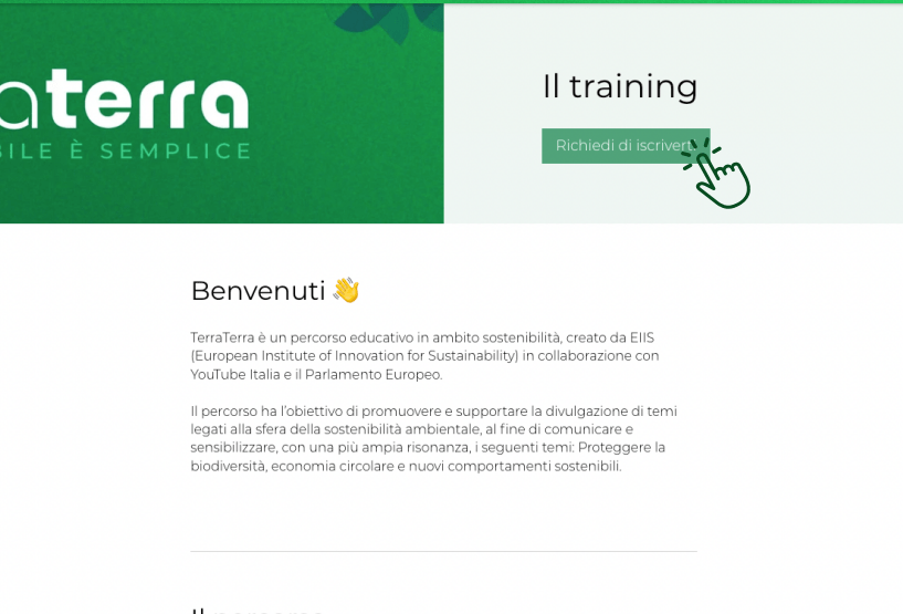 PER ACCEDERE AL TRAINING CLIKKATE SU QUESTO LINK : https://www.eiis-terraterra.eu/