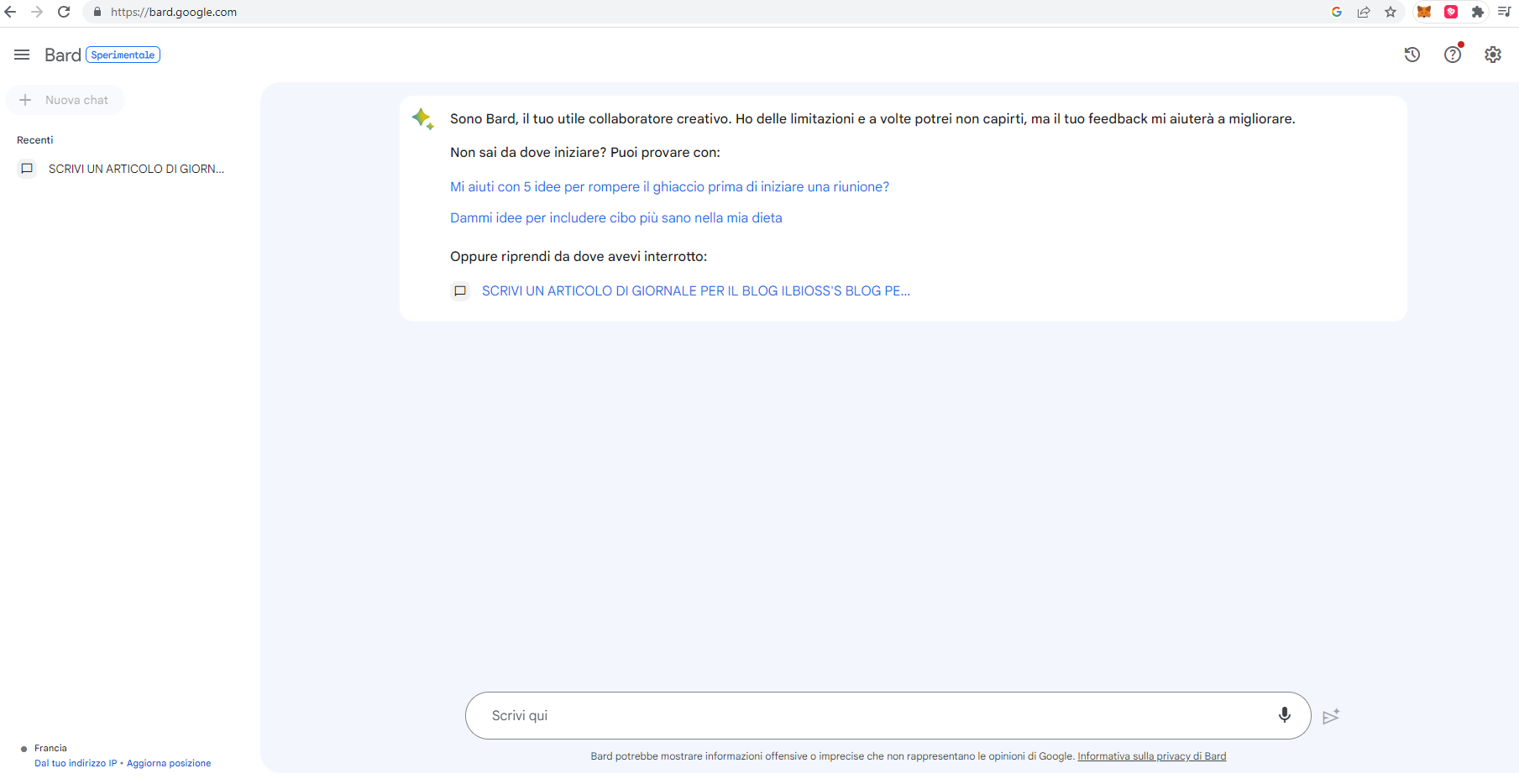 INSOMMA PROVATE BARD : https://bard.google.com/