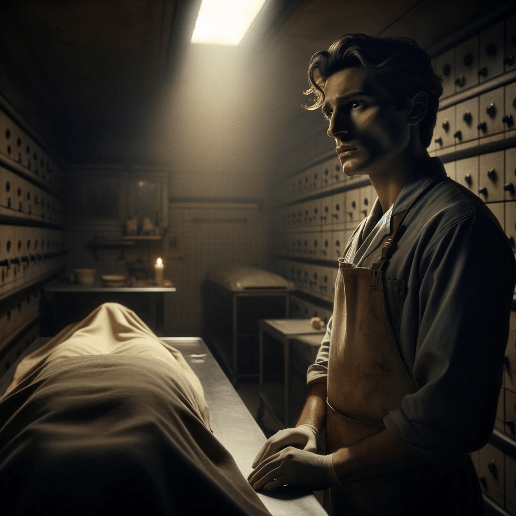 Nell’obitorio semibuio, Luca lavorava con una precisione quasi rituale. La luce fredda delle lampade fluorescenti proiettava ombre lunghe e sinistre sulle pareti, mentre le sue mani, guidate dall’abitudine e dal rispetto, preparavano l’ultimo viaggio di un defunto. Nonostante il silenzio e la solitudine del luogo, la sua mente era invasa da un tumulto di pensieri su Sofia.