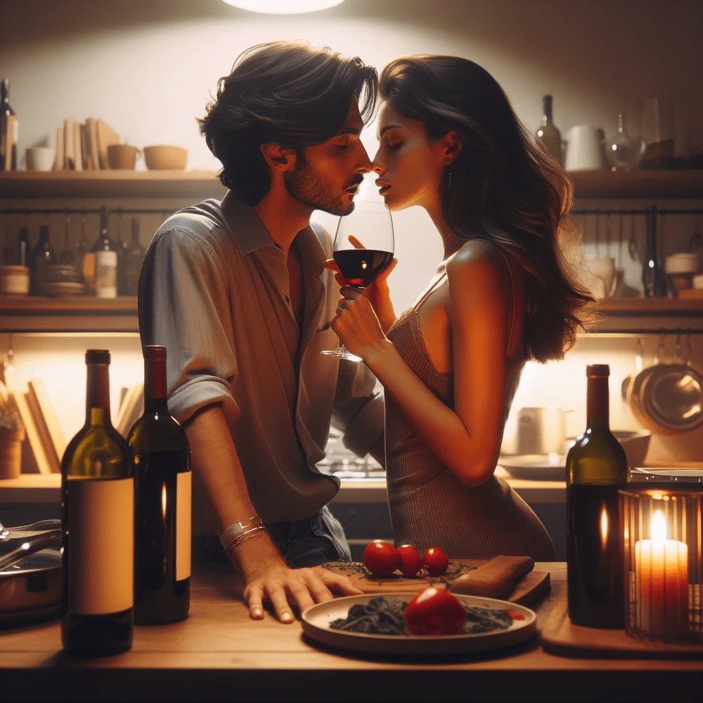 Il profumo del cibo in cottura si mescolava all’aroma del vino, creando un sottofondo sensoriale che amplificava la loro passione. Il mondo esterno sembrava svanire, lasciandoli soli in quel vortice di emozioni e sensazioni. La cucina, che solo pochi minuti prima era stata teatro della preparazione di una cena tranquilla, si trasformò in un palcoscenico per la loro crescente intimità.