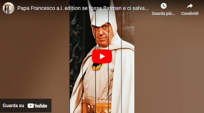 Uncategorized Papa Francesco vestito da Batman edizione ai Pubblicato da ilbioss il gennaio 4, 2024gennaio 8, 2024 papa Francesco veglia su di noi nananananananananananana 😂 Condividi: Fai clic per condividere su Facebook (Si apre in una nuova finestra) Facebook Fai clic per condividere su X (Si apre in una nuova finestra) X Mi piace Caricamento... Correlati