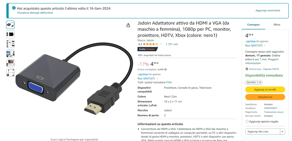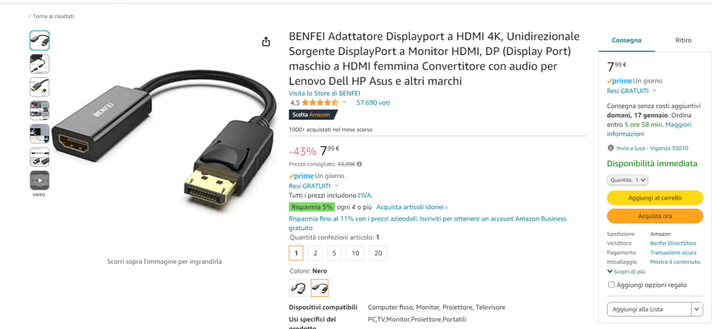 Link Amazon:Adattatore HDMI-DisplayPort su Amazon.it