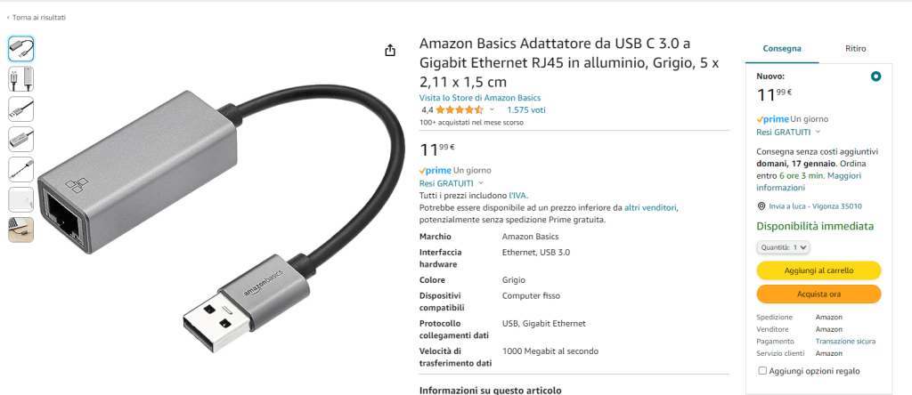 Link Amazon: Adattatore Thunderbolt-Ethernet su Amazon.it