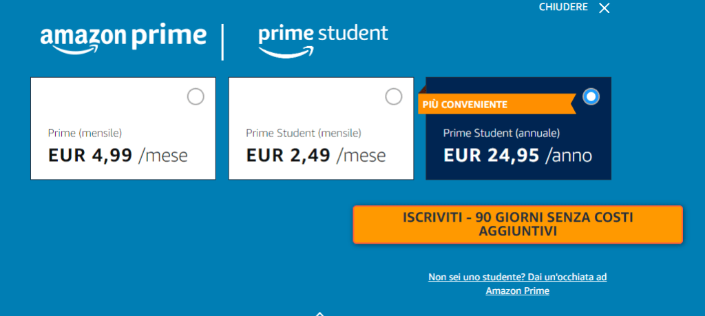 Nota Bene: L’offerta Prime Student è riservata agli studenti universitari.