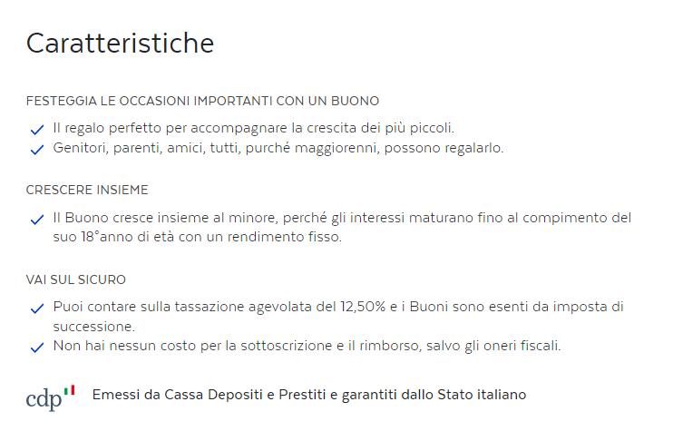 Per quanto riguarda l’acquisto, i Buoni sono disponibili a chiunque sia maggiorenne e possono essere intestati solo al minore.