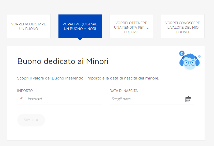 Link al simulatore : https://buonielibretti.poste.it/risparmiare-con-i-buoni.html#minori