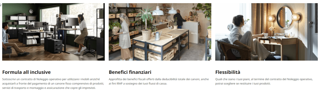 Secondo quanto dichiarato da IKEA, il Noleggio operativo offre diversi benefici chiave: