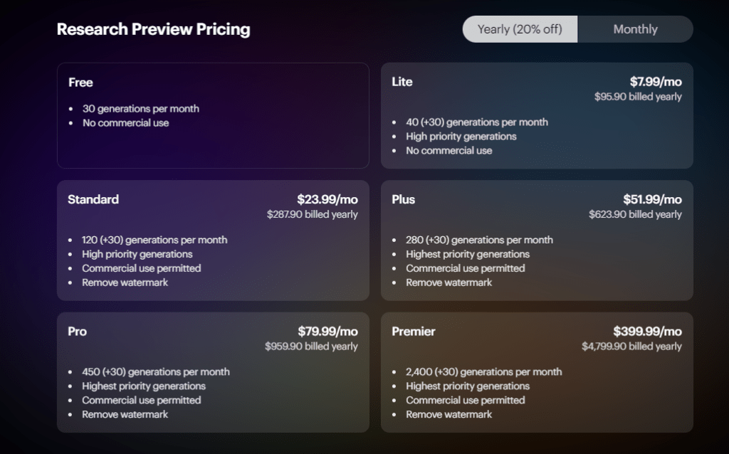 ps: eccovi i costi attuali per l’account Ai Lumalabs :