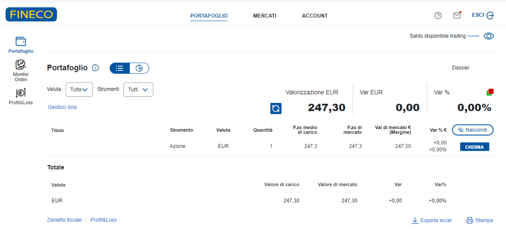 Per semplificare il processo, ho aperto un conto trading con Fineco, che attualmente non ha alcun costo.