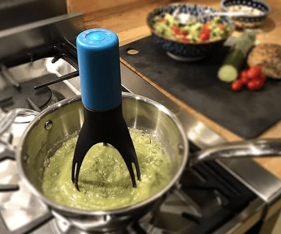 È semplice: appoggia questo simpatico agitatore nella pentola, premi un pulsante e lasciagli fare il lavoro sporco – o meglio, il lavoro di fino.