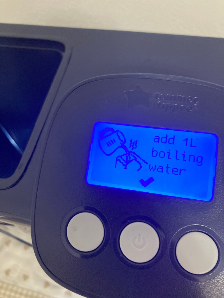 Inserisco il biberon sotto il beccuccio, seguo le indicazioni sul display digitale (che è anche illuminato, ideale di notte), e in pochi istanti ho un biberon pronto.