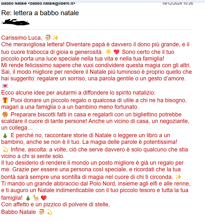 Ed ecco che poco fa Babbo Natale mi ha risposto 🙂 :