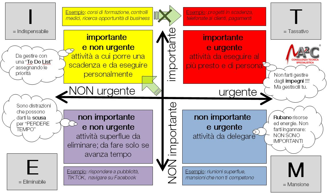 Una soluzione pratica è l’utilizzo della Matrice di Eisenhower, uno strumento che aiuta a classificare le attività in base alla loro urgenza e importanza