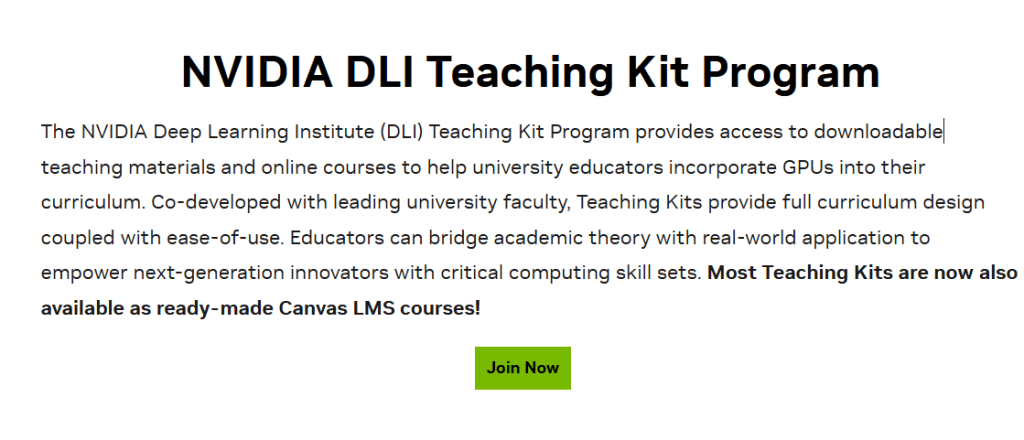 Ecco dove entra in gioco il NVIDIA Deep Learning Institute (DLI) Teaching Kit Program: