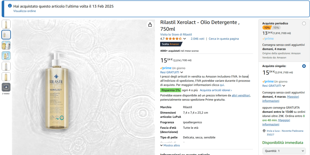 Se vuoi provare anche tu Rilastil Xerolact Olio Detergente (750ml) per la pelle delicata dei tuoi bambini, lo trovi su Amazon qui: https://amzn.to/3Dj5Rgx.