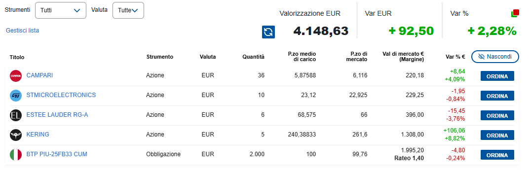 • Riduzione di Kering: Sono state vendute diverse azioni, consolidando un guadagno importante.