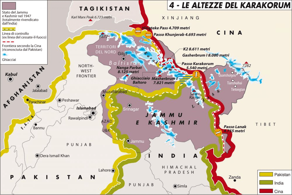 Subito dopo la partizione, scoppia il primo litigio per la regione del Kashmir. Il Kashmir era (ed è tuttora) una regione particolare: a maggioranza musulmana, ma governata allora da un maharaja induista che decise di aderire all’India. Pakistan non l’accettò e ne venne fuori una guerra nel 1947-48, finita con il Kashmir spezzato in due: una parte sotto controllo indiano e una sotto controllo pakistano, divise dalla Linea di Controllo. Da allora il Kashmir è il nodo centrale del conflitto tra i due paesi, perché entrambe lo rivendicano interamente. Pensate: India e Pakistan hanno già combattuto diverse guerre nella loro storia (nel 1947-48, nel 1965, nel 1971) e molti altri scontri minori, e due di queste guerre erano proprio per il Kashmir. Nel 1999 c’è stato un altro conflitto armato in Kashmir (la cosiddetta guerra di Kargil).