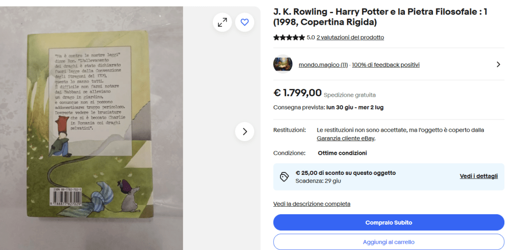 - Algoritmo generalista – Sembra calcolare il prezzo medio di un paperback standard, ignorando tiratura, rarità e stato “da bacheca del Ministero della Magia”.