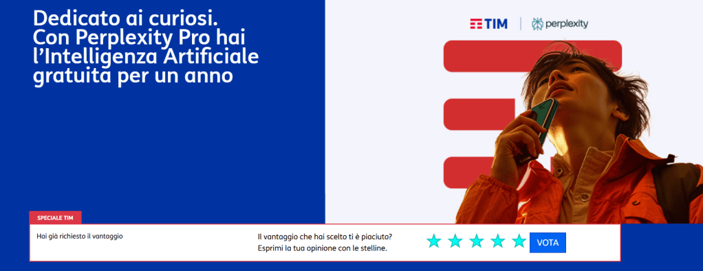 Non capita tutti i giorni di imbattersi in una sorpresa così incredibile! Navigando senza aspettative su TIM Party, mi sono accorto quasi per caso di una promozione davvero unica: TIM regala un anno intero di Perplexity Pro !