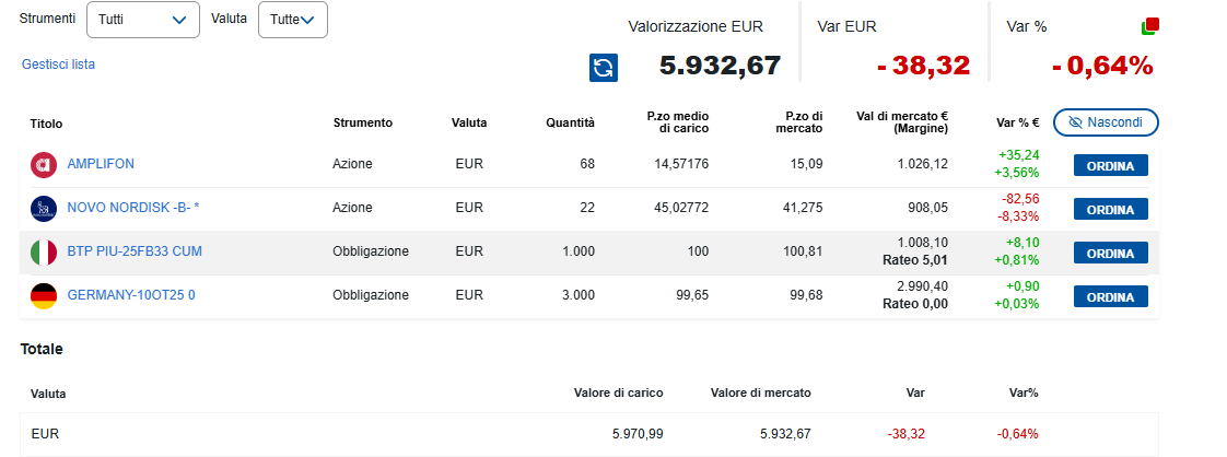 • Valore portafoglio: 5.932,67 €