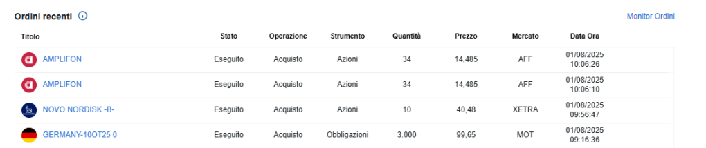 • Liquidità pronta: 1.349 € disponibili, valutando rientro su kering e un avventura su Moncler se il lusso corregge ancora.