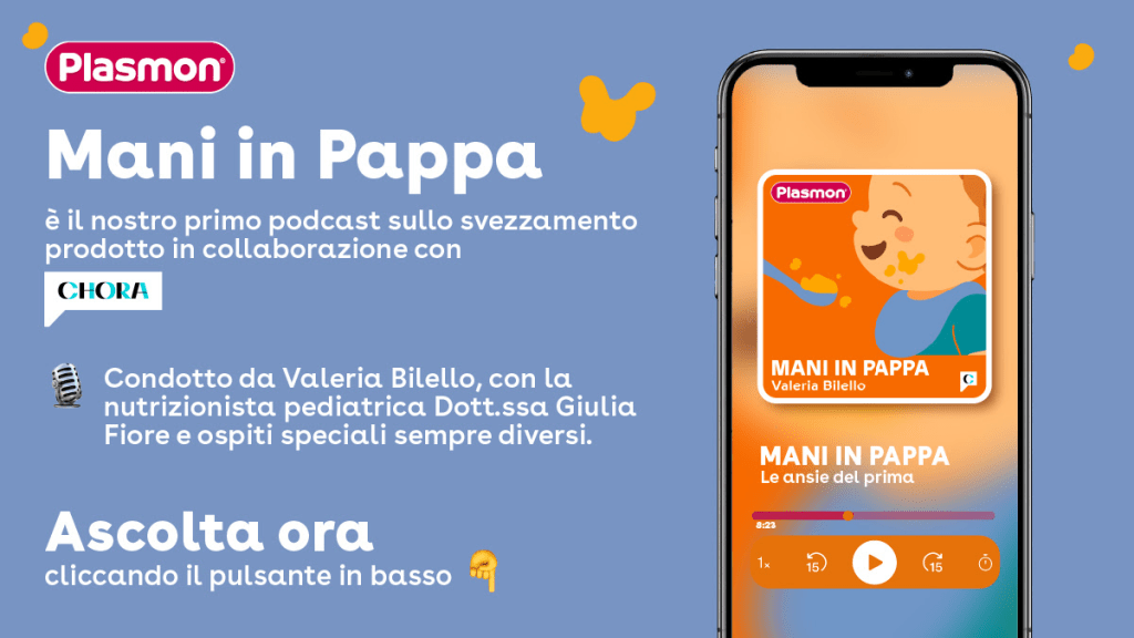Per questo mi è piaciuta subito l’idea di Mani in Pappa, il primo podcast di Plasmon, fatto insieme a Chora.