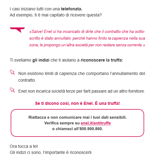 Se vi dicono così, non è Enel. È una truffa.