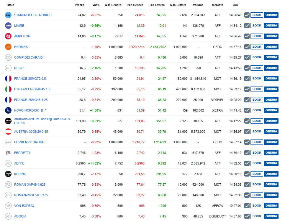 Valore di mercato: € 9.299,87 (giornata –0,51%).