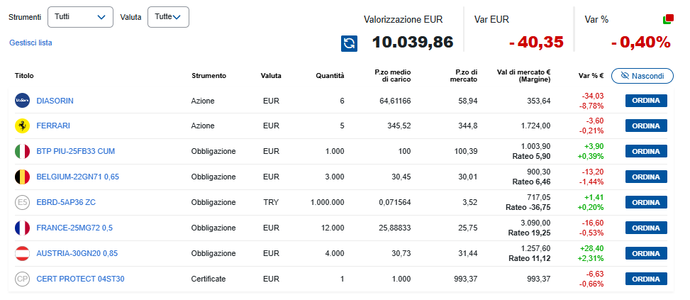 • 📊 Valore portafoglio titoli: 10.039 €