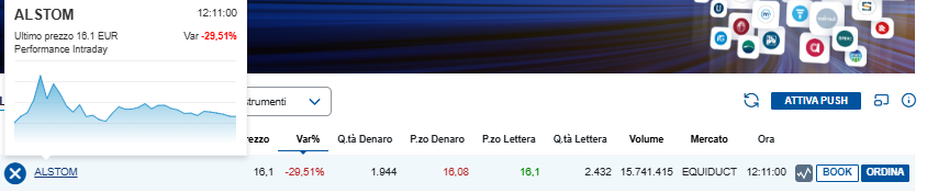 Fuori dal portafoglio, oggi il caso più interessante da guardare è stato Alstom.